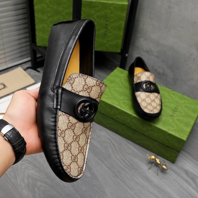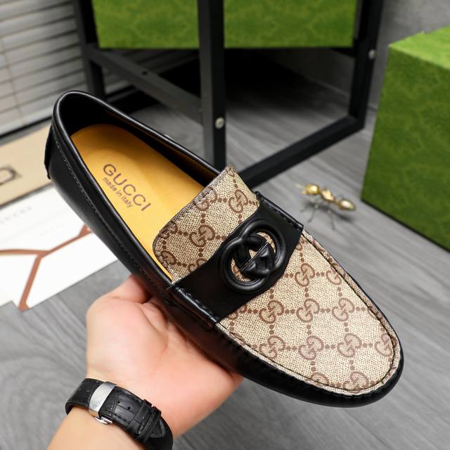 商品商标:Gucci 古驰 休闲套脚鞋 正码码数: 38-44 商品材料:精选牛皮拼接鞋面 猪皮内里 原版大底