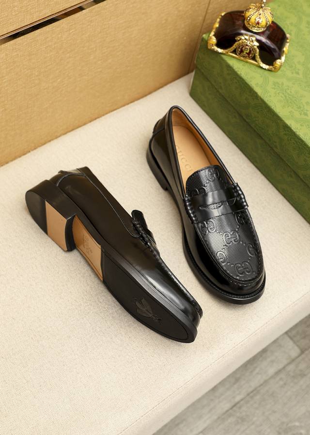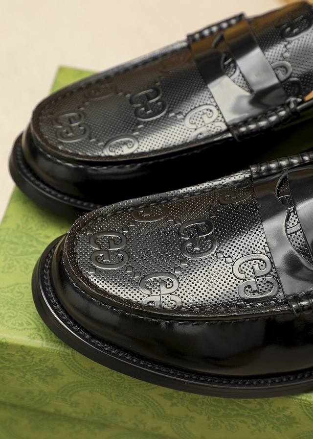 / 商品商标:GUCCI 古驰 休闲皮鞋 正码码数: 38-44 45订制 商品材料:精选 进口头层开边珠牛皮压花鞋面,进口水染牛皮内里。强烈立体视觉效果,组合大底