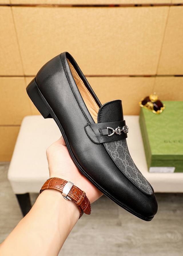 / 商品商标:GUCCI 古驰 休闲皮鞋 正码码数: 38-44 45订制 商品材料:精选 进口头层牛皮+布料鞋面+奢华五金扣,进口小染牛皮内里。强烈立体视觉效果,