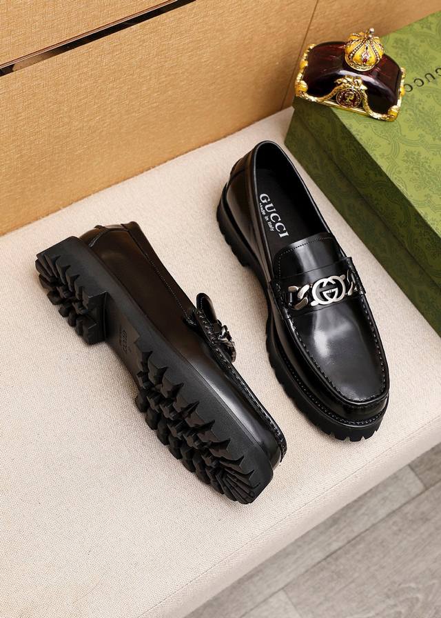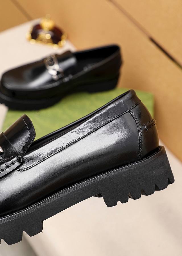 商品商标:GUCCI 古驰 休闲皮鞋 正码码数: 39-44 38.45订制 商品材料:精选 进口头层开边珠牛皮鞋面+奢华五金扣,进口水染牛皮内里。强烈立体视觉