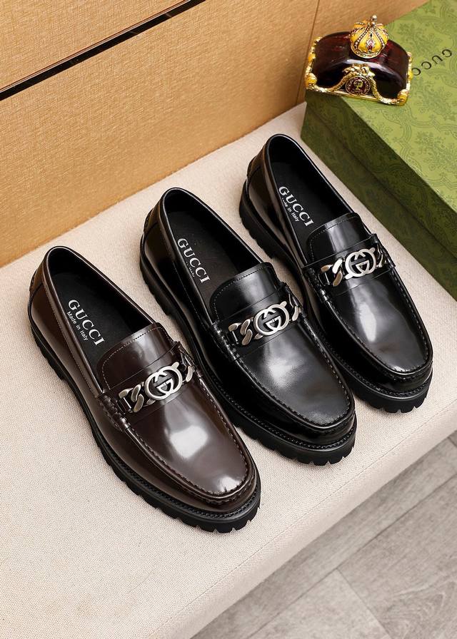 精品推荐**古奇**最新商务正装皮鞋 官网同步 市场上顶级版本 纯手工制作.面料:进口小牛皮配水染牛里38、39、40、41、42、43、44...