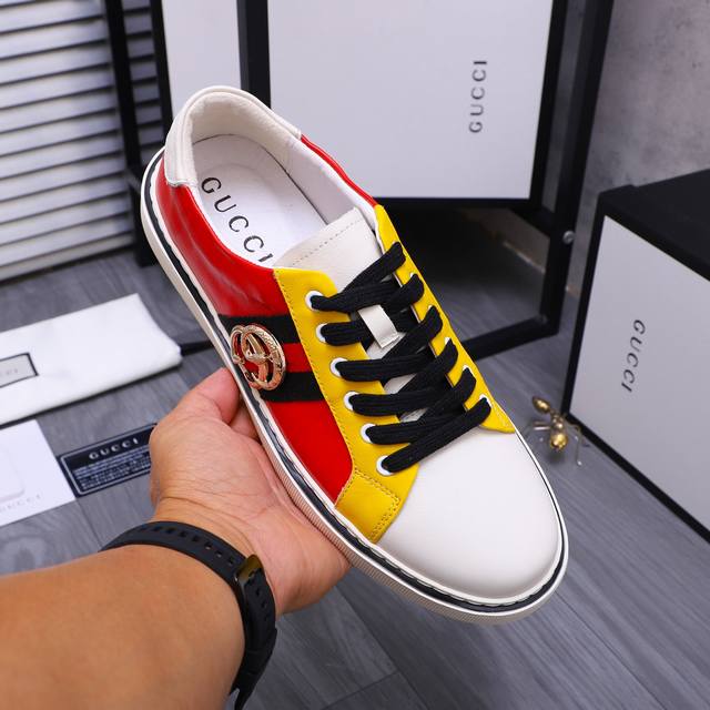商品商标:GUCCI 古驰 休闲鞋 正码码数: 38-44 商品材料:精选牛皮鞋面 猪皮内里 橡胶大底