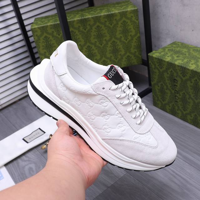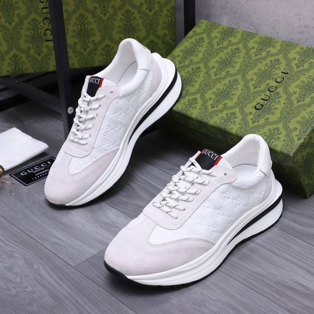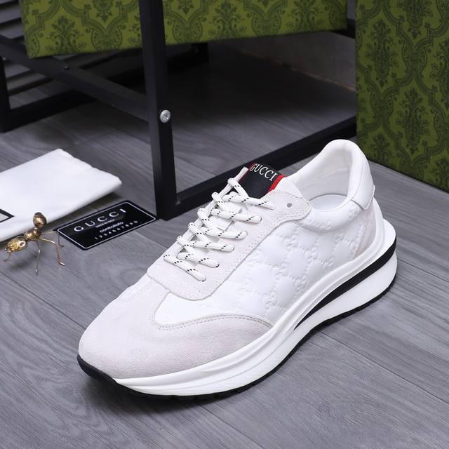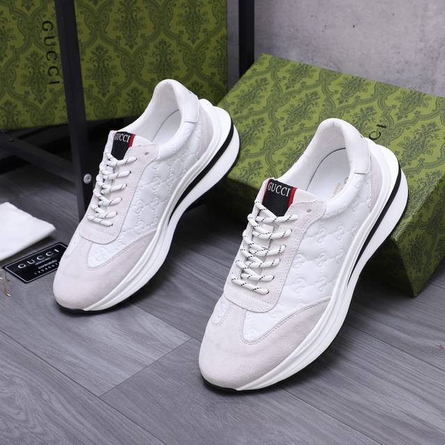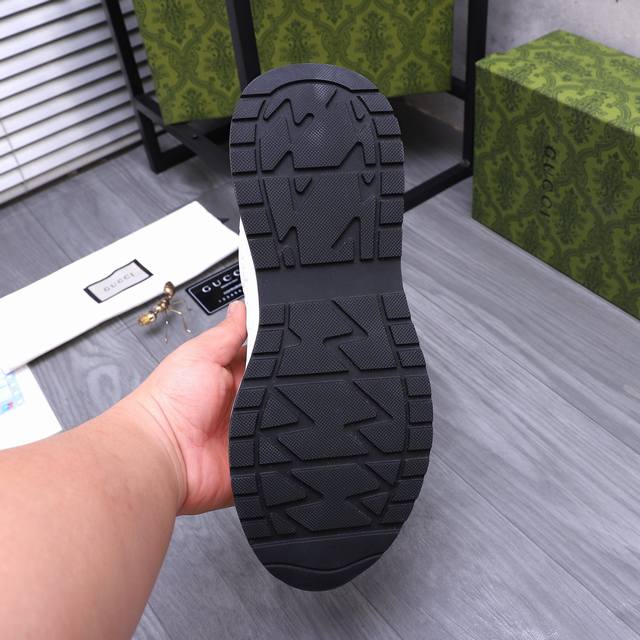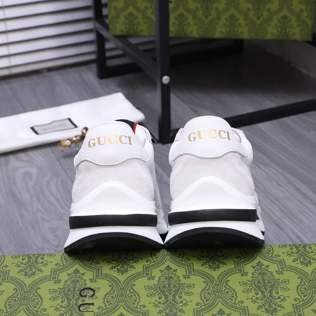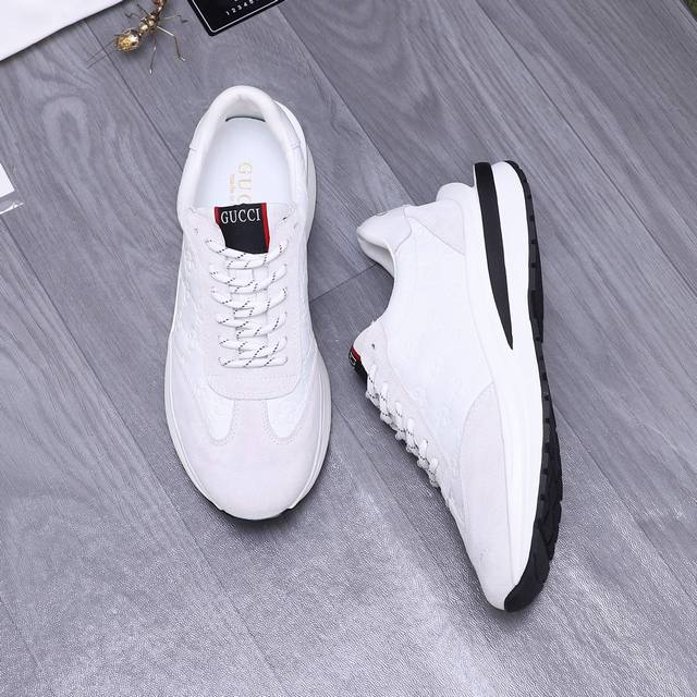 商品商标:Gucci 古驰 休闲鞋 正码码数: 38-44 45订做不退换 商品材料:精选压纹牛皮拼接鞋面 羊皮内里 橡胶大底