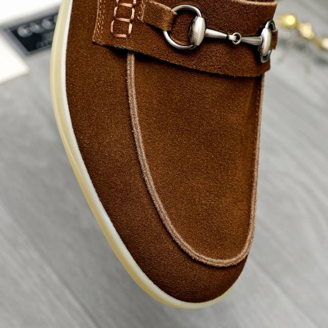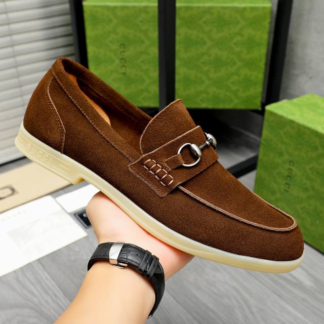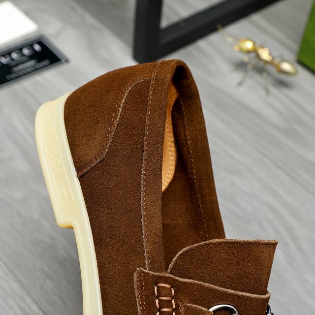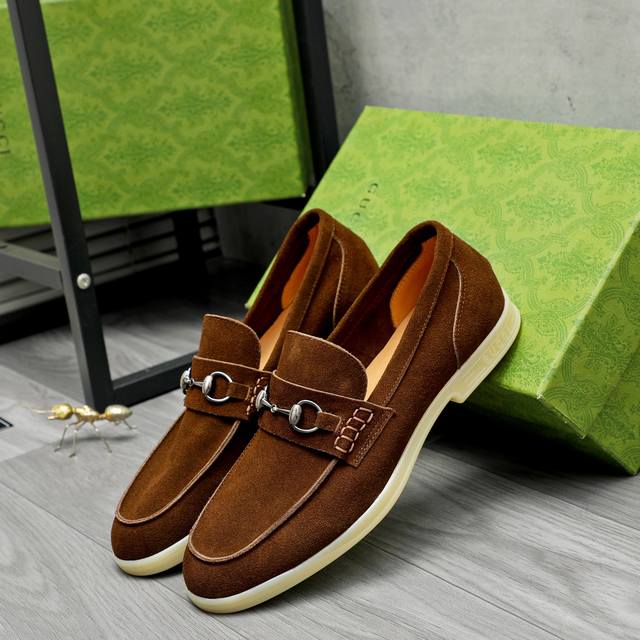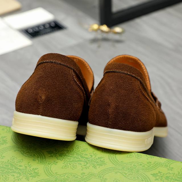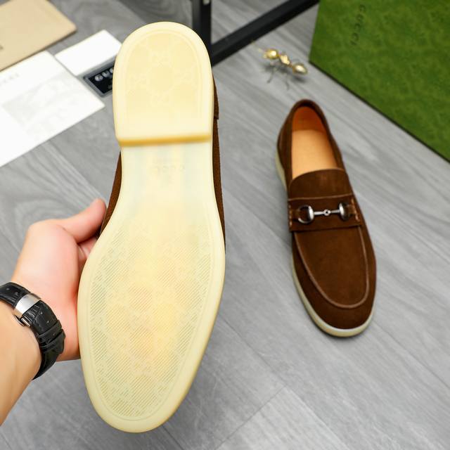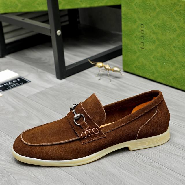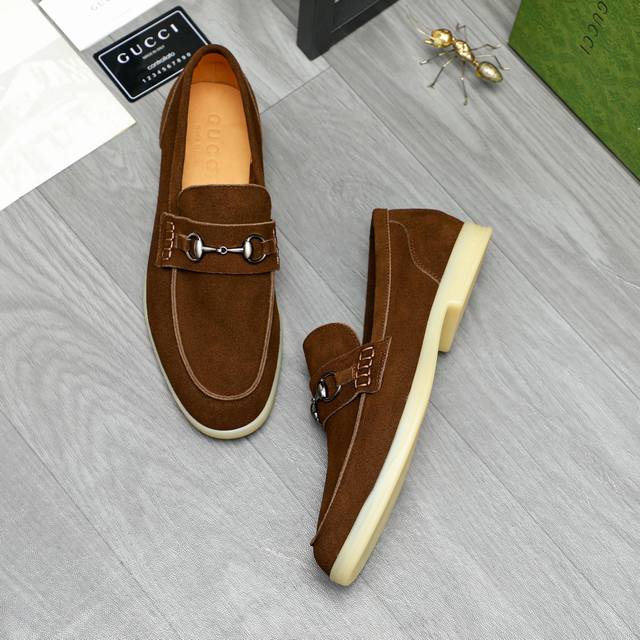 商品商标:Gucci 古驰 商务套脚皮鞋 正码码数: 38-45 商品材料:精选反绒牛皮鞋面 牛皮内里 原版大底