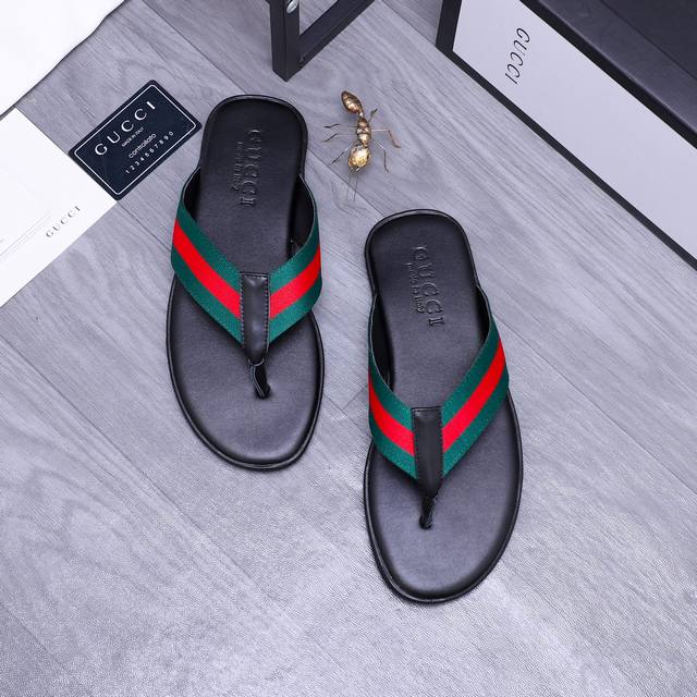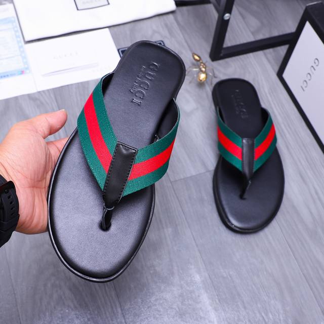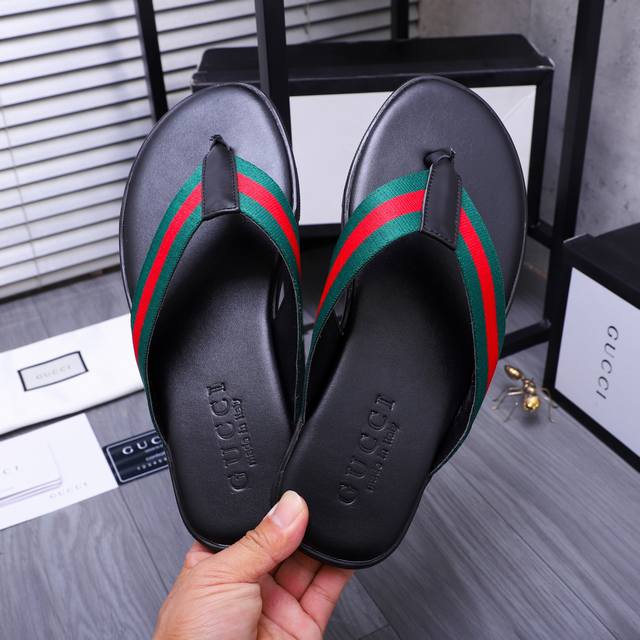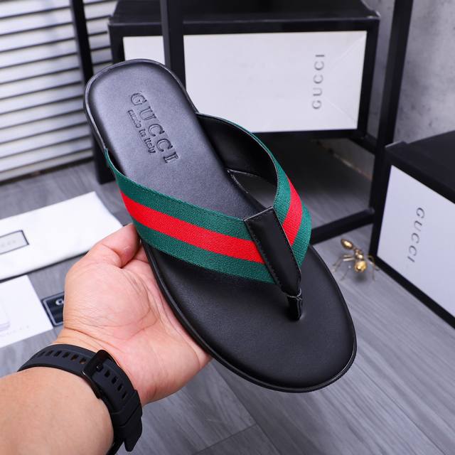 商品商标:GUCCl 古驰 交叉拖鞋正码码数: 38-45商品材料:鞋面牛皮配织带材料原版大底