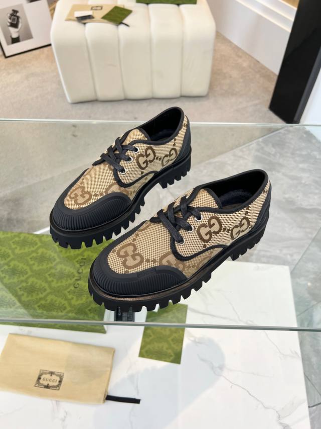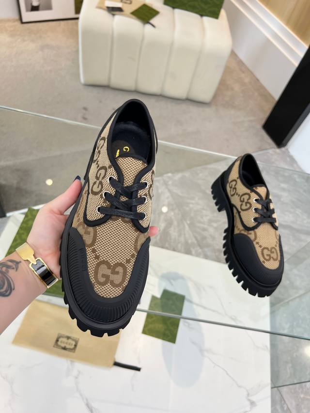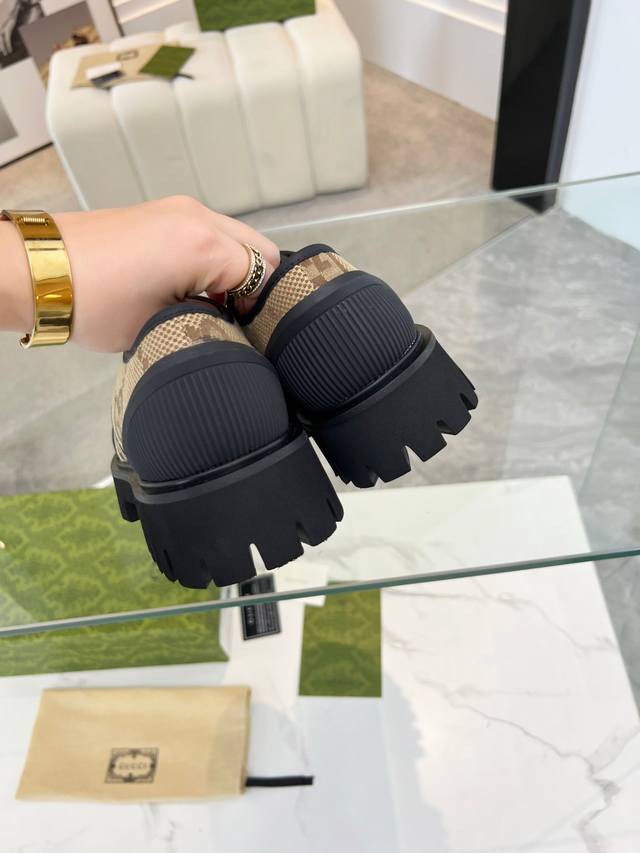 实价 Gucci帆布单鞋,一比一复刻。适合秋冬款。打造属于完美的风格炸街款又酷又飒 C位时髦穿搭 带复古加未来感经典鞋 超耐看。 原版倒模楦型,进口高端织针提花布呈现出精致质感!大底原版开模Eva发泡耐磨底+前后包头。上脚轻松舒适。