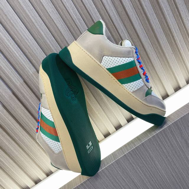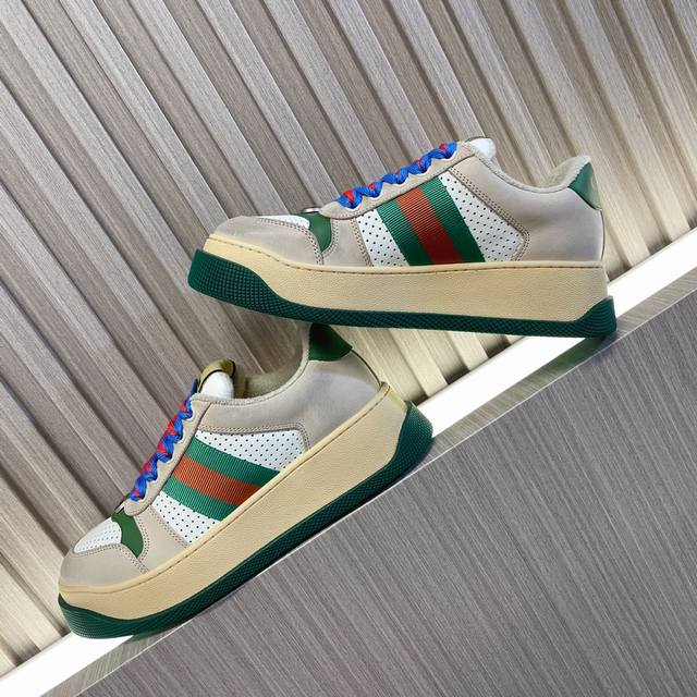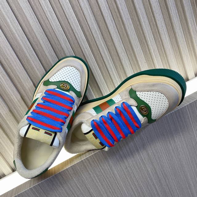 顶级版本Gucci早春古驰G家 最新爆款MAC80 运动鞋 情侣款 休闲 复古 做旧 脏脏鞋 小脏鞋 小白鞋 原版购入开发 做货...