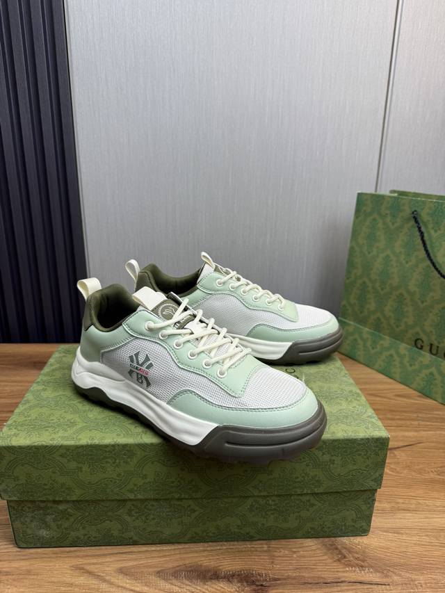 工厂价古奇.新品来袭时尚潮男必备,大牌风范, 材料:鞋面进口牛皮拼接面料+透气网内里,耐磨橡胶大底,39-44