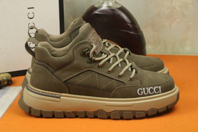 商品商标:Gucci 古驰 商务休闲皮鞋 正码码数: 38-44 商品材料:精选反绒牛皮鞋面 牛皮内里 原版大底