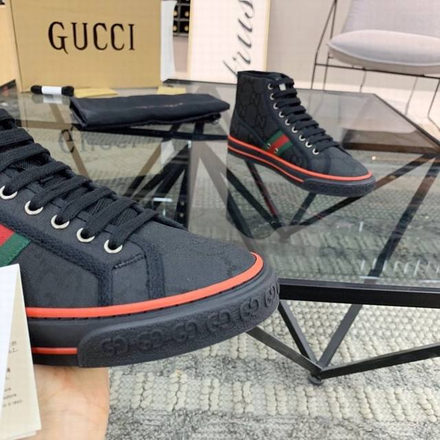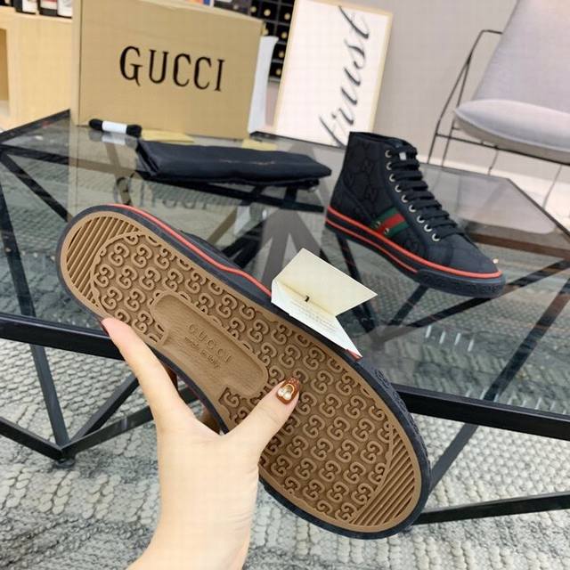 工厂价 古奇g家高版本 Tennis 1977系列,情侣gg运动高帮帆布鞋!购入原版1:1复刻,私磨tpu原版大底,绝对不用劣质的橡胶底,纯手工拉帮套包工艺,细