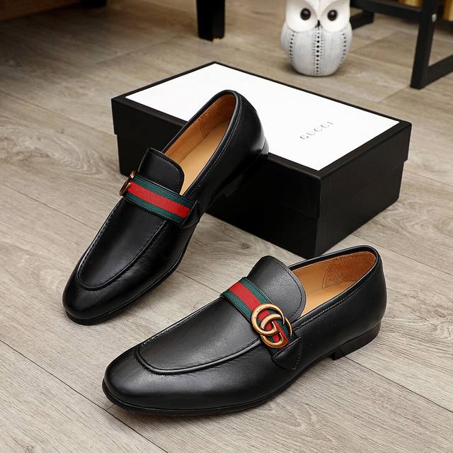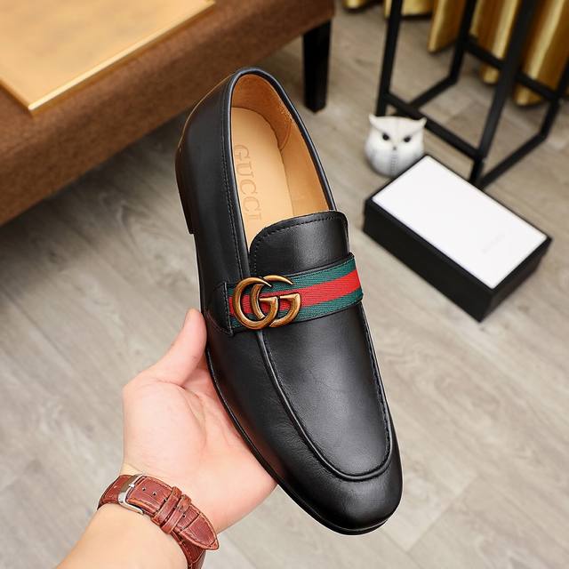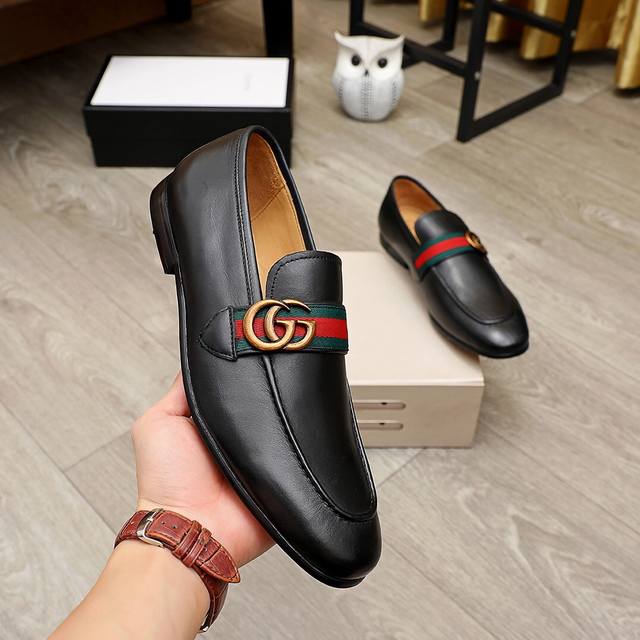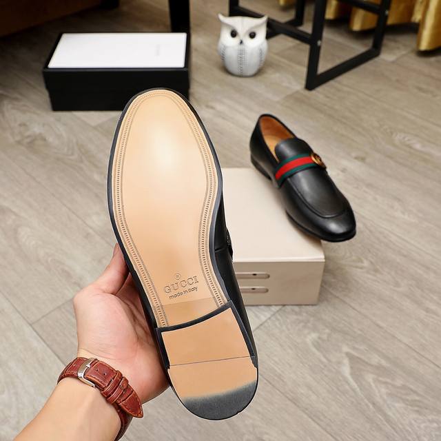 工厂价 古驰 Gucci 官网男士商务正装皮鞋更新香港专柜同步新款完全一比一复刻出货专柜品质零差距0外均采用进口头层牛皮 配原版五金扣水染皮内里制作,黑色,棕色色,配码 38-45