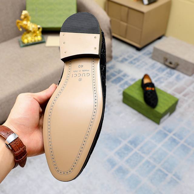 工厂价 古驰 GUCCI 官网男士商务正装皮鞋更新香港专柜同步新款完全一比一复刻出货专柜品质零差距0外均采用进口头层牛皮 配原版五金扣水染皮内里制作,黑色,蓝色,配码 38-44 45.46.47.可订做