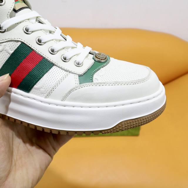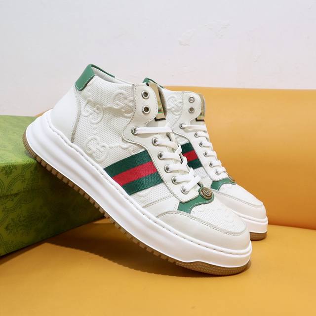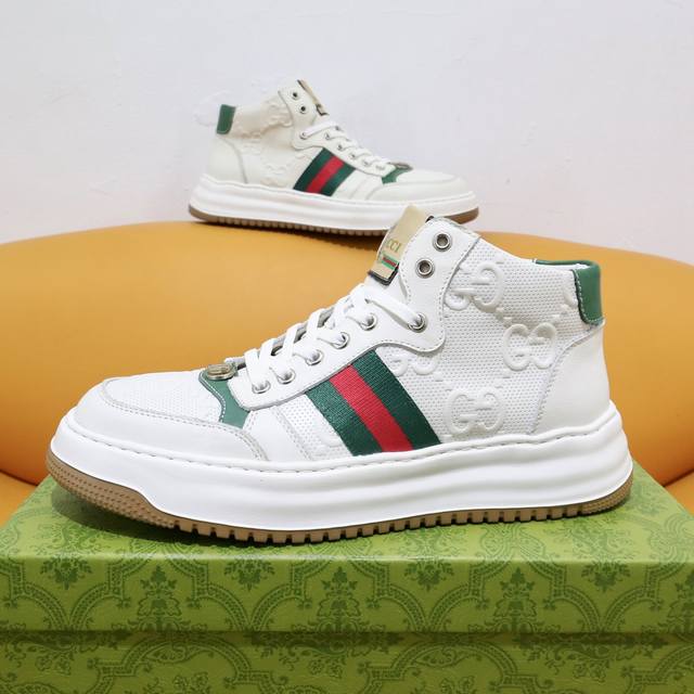 工厂价: 官网爆款GUCCI 古奇 高版本~”青年休闲高帮鞋 潮人风 男士2024 专柜同步发售,夏季男鞋 意大利进口原版品牌精选头层意大利牛皮 羊皮内里 拒绝