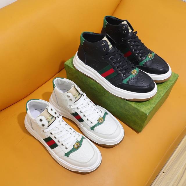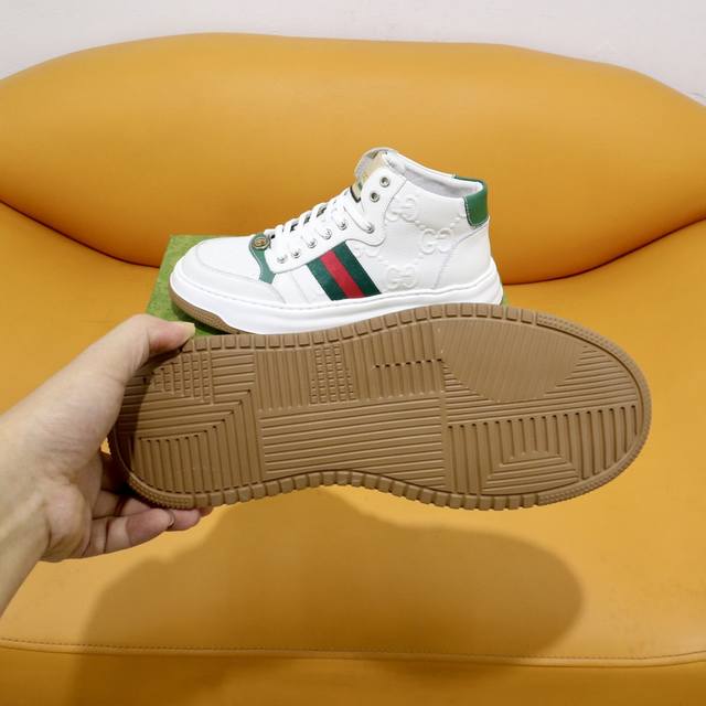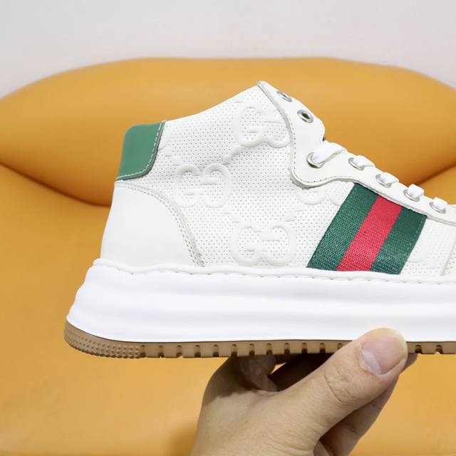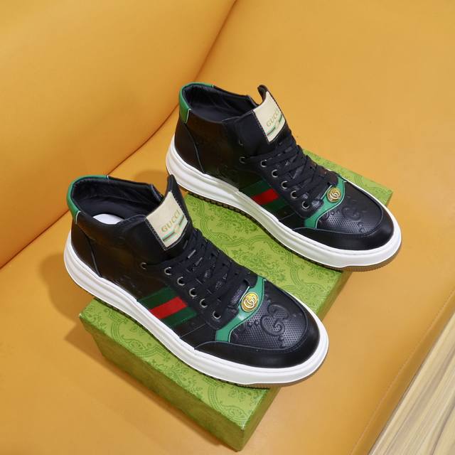 工厂价: 官网爆款GUCCI 古奇 高版本~”青年休闲高帮鞋 潮人风 男士2024 专柜同步发售,夏季男鞋 意大利进口原版品牌精选头层意大利牛皮 羊皮内里 拒绝脱色磨脚 鞋底:原厂压纹 原版底,法国风格 ,原单品质 超舒服原版底 驾车完美。实物拍摄实物更赞 适合户外司机驾车出行 跑步鞋 男鞋码数:38-44 45可定做