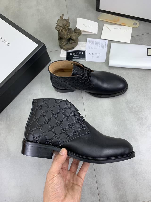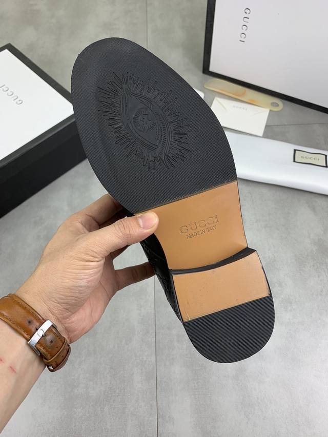 工厂价 实价 水染牛里和毛里 古奇 Gucci高端男士正装商务高帮皮鞋,原单1:1正品货!原版进口高端小牛皮,原版金属饰扣,进口头层牛皮内里垫脚 原版大底,男鞋
