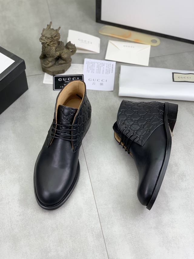 / 工厂价 实价 水染牛里和毛里 古奇 Gucci高端男士正装商务高帮皮鞋,原单1:1正品货!原版进口高端小牛皮,原版金属饰扣,进口头层牛皮内里垫脚 原版大底,男鞋