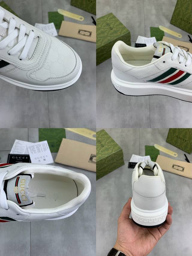 工厂价 实价 顶级版本 原单系列 GUCCl 古奇最新款休闲鞋,。牛皮冲孔系列 官网最新款 。专柜同步发售,鞋面选用意大利进口原版荔枝纹小牛皮 搭配原版特殊材料拼接设计理念 ; 凸显 高端 档次 贵气 做工考究 原版牛皮内里牛皮垫脚 鞋底:原厂特供原版TPU配发泡大底 码数:38-44 45 46定做