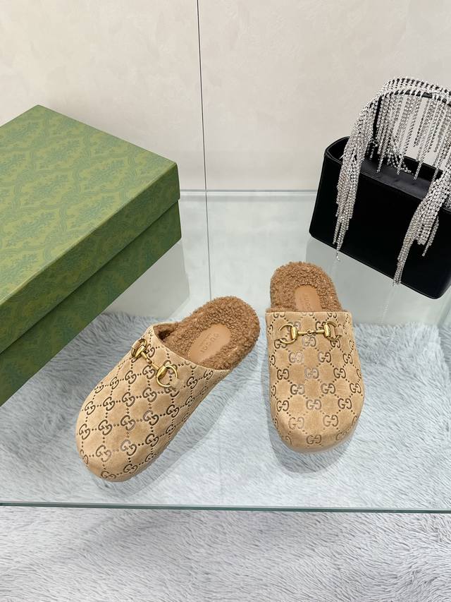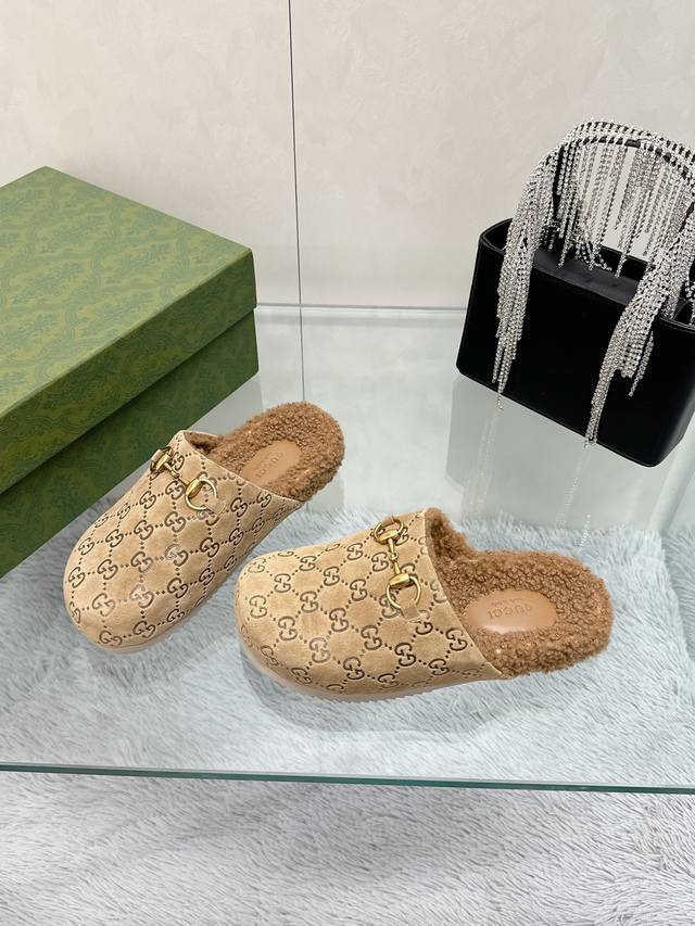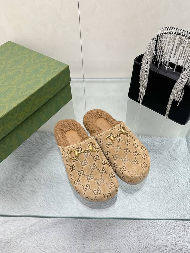 秋冬新款羊毛女式带夹木鞋,美丽奴羊毛拖鞋