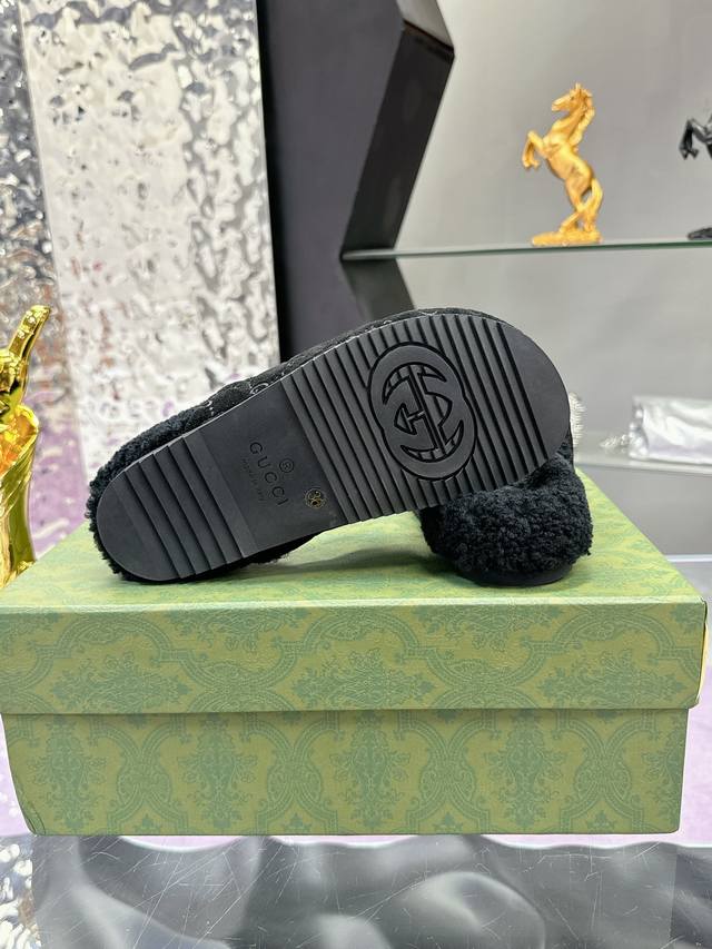 秋冬新款羊毛女式带夹木鞋,美丽奴羊毛拖鞋