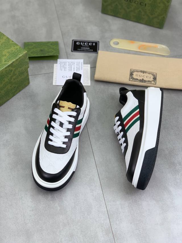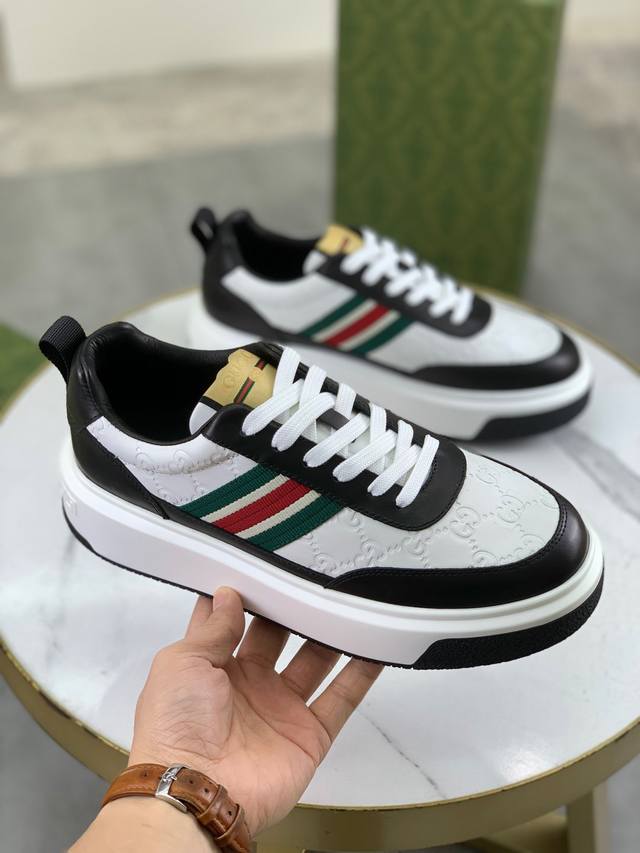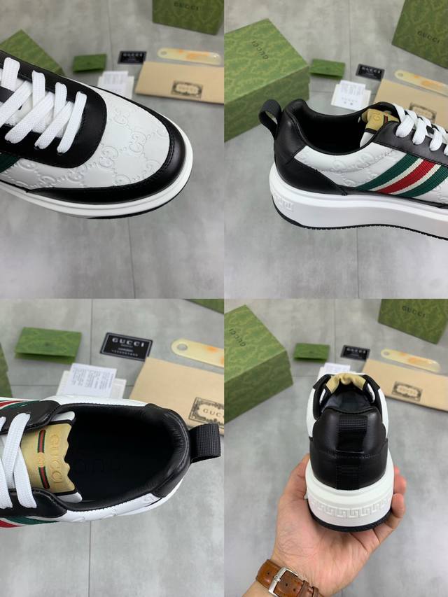 工厂价 顶级版本 原单系列 Guccl 古奇最新款休闲鞋, 牛皮冲孔系列 官网最新款 专柜同步发售,鞋面选用意大利进口原版荔枝纹小牛皮 搭配原版特殊材料拼接设计理念 ; 凸显 高端 档次 贵气 做工考究 原版牛皮内里牛皮垫脚 鞋底:原厂特供原版tpu配发泡大底 码数:38-44 45 46定做