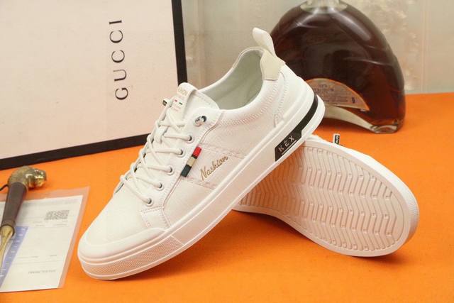 工厂价 古奇.新品来袭时尚潮男必备,大牌风范, 材料:鞋面进口牛皮拼接面料+舒适网内里,耐磨橡胶大底,39-44