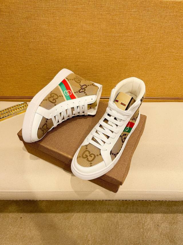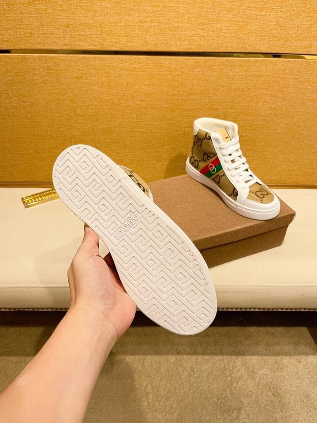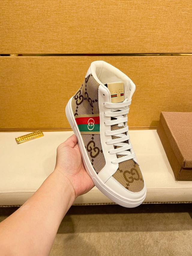工厂价 高帮 Gucci 古奇顶级新款专柜同步发售,鞋面意大利进口头层牛皮 全进口真皮内里,完全1比1复刻,鞋底:原厂特供原版底,独家活动成型底超级舒适,原厂跟单货,高品质,可随意进出专柜,欢迎对比 码数:38-44
