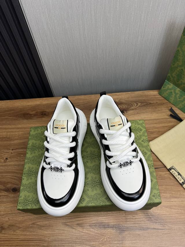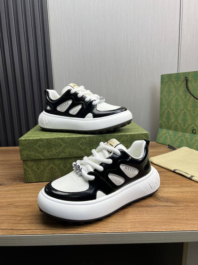 工厂价 Gucc* 古奇.高版本专柜同步发售 2024男士新款板鞋 鞋面进口牛皮 ; 凸显 高端 档次 贵气 做工考究 内里采用原版牛皮 ,鞋底:原厂特供原版大