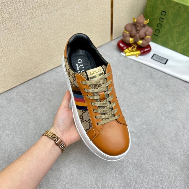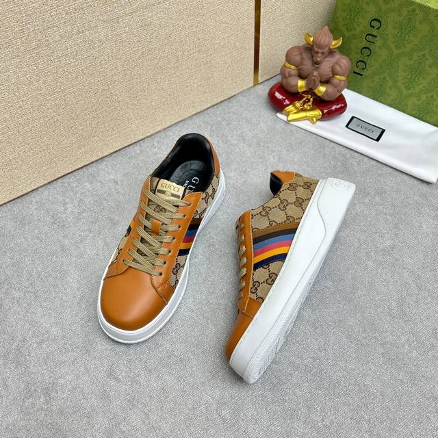 工厂价 Gucci 古奇官网男士休闲鞋同步款,鞋面选用牛皮配进口新品牌元素 古奇,彰显不俗的气息,设计简约套脚款型 超级百搭 内里皮,气垫橡胶大底 ,2个颜色可