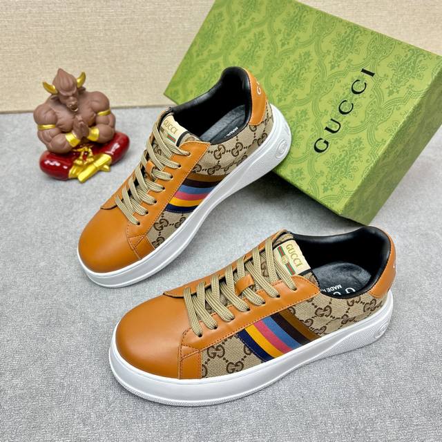 / 工厂价 Gucci 古奇官网男士休闲鞋同步款,鞋面选用牛皮配进口新品牌元素 古奇,彰显不俗的气息,设计简约套脚款型 超级百搭 内里皮,气垫橡胶大底 ,2个颜色可