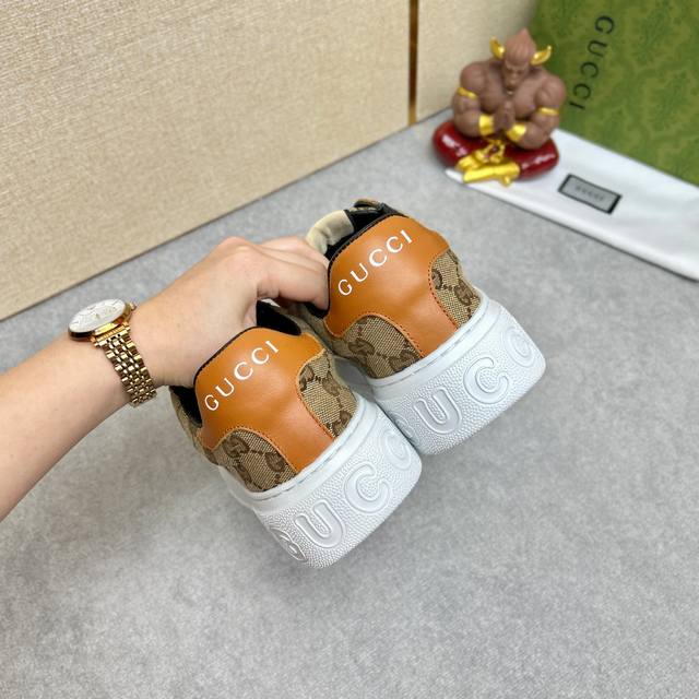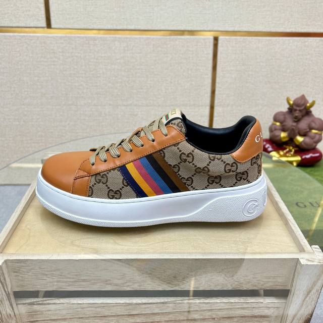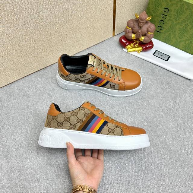 Gucc最新ip轻质厚底小白鞋上脚秒内增高4Cm!! 简约 好搭且复古韵味十足~鞋舌最新防伪布标。且带电子芯片防伪。...