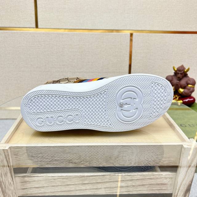 工厂价 Gucci 古奇官网男士休闲鞋同步款,鞋面选用牛皮配进口新品牌元素 古奇,彰显不俗的气息,设计简约套脚款型 超级百搭 内里皮,气垫橡胶大底 ,2个颜色可选!码数38-44