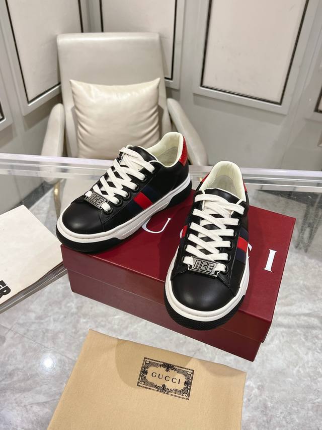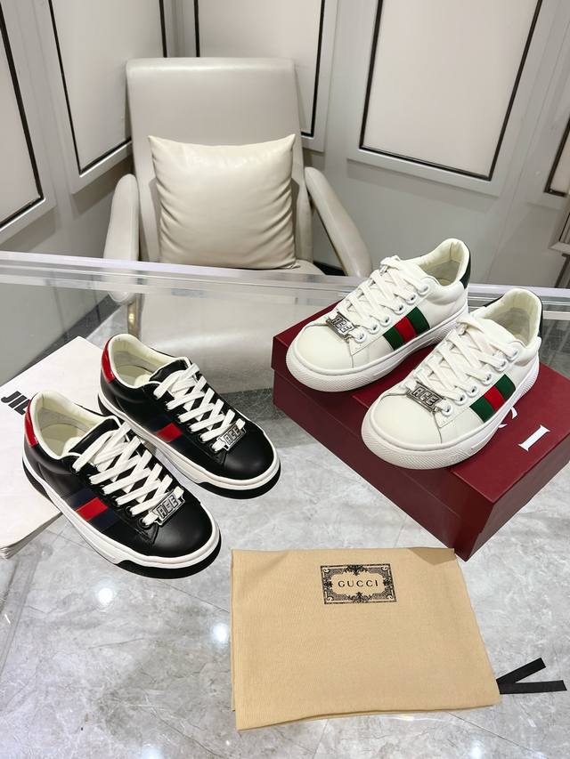 工厂价: Gucci 古奇男女同款运动鞋小白鞋。牛皮,牛皮内裡,牛皮垫脚, 码数35-45