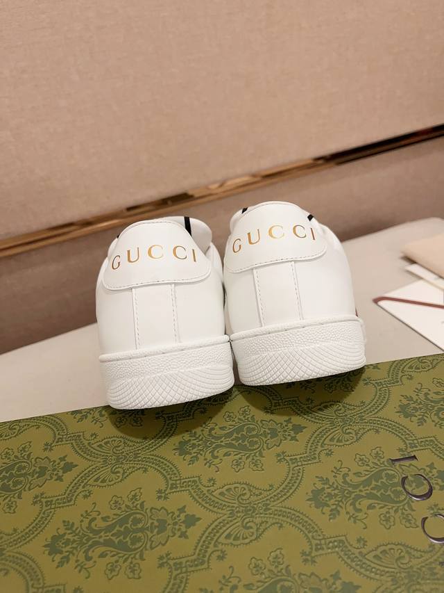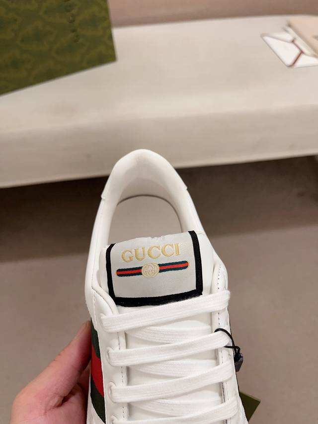 原版购入开发 做货 古驰全新爆款系列 精致小巧的互扣式ACE标识浪漫诠释此系列的美学理念。选用米白色皮革,复古灵感巧妙融于运动鞋设计,焕新演绎品牌标识。