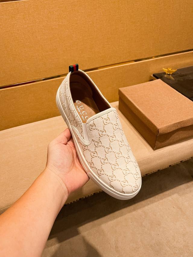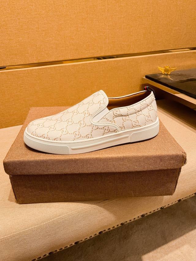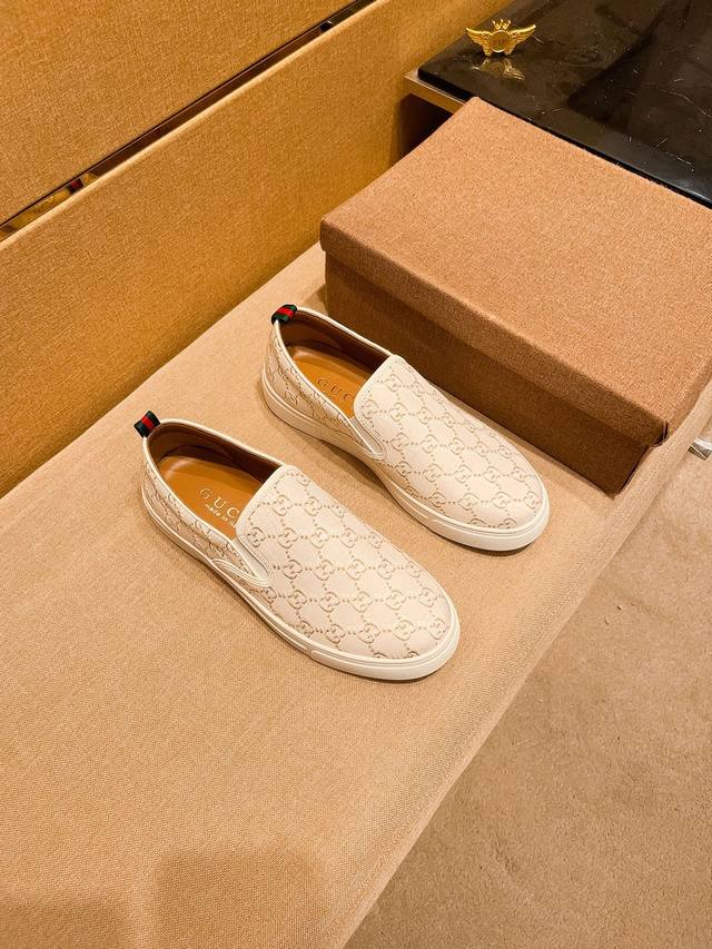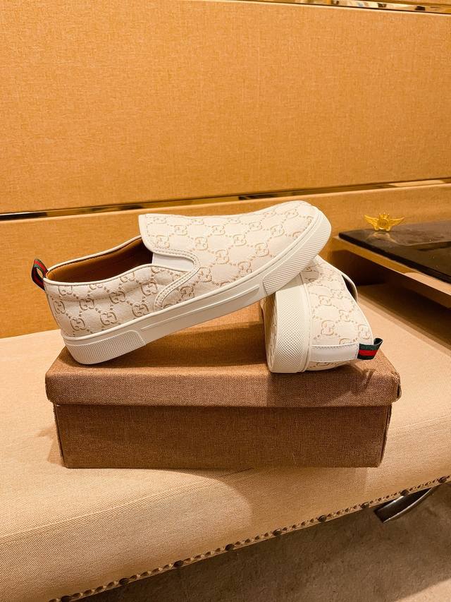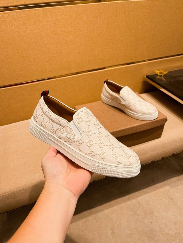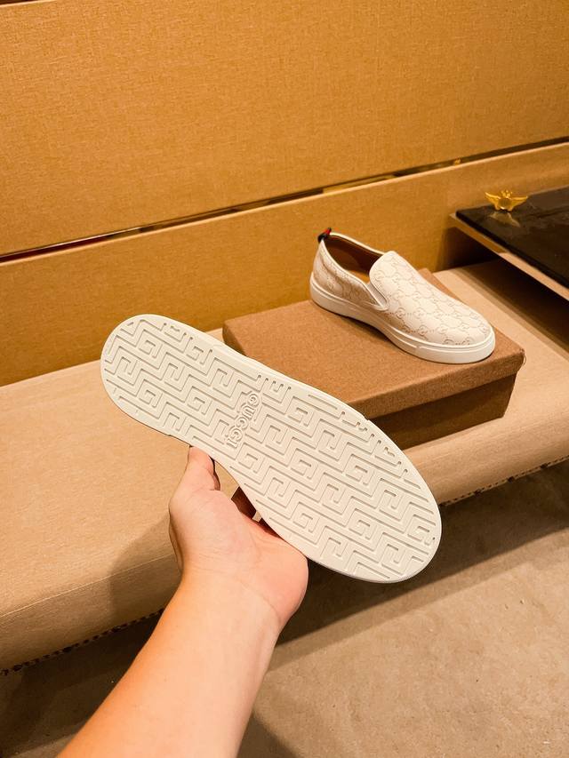 商品商标:Gucci 古驰 休闲套脚皮鞋 正码码数: 38-45 商品材料:精选牛皮拼接印花鞋面 牛皮内里 原版大底