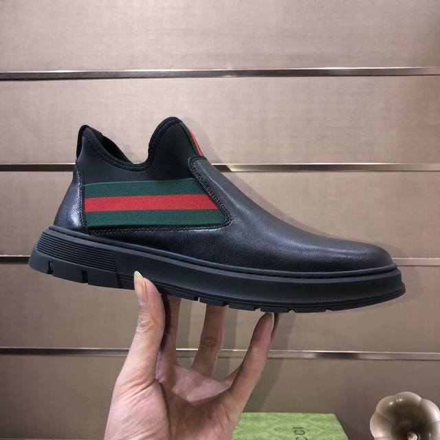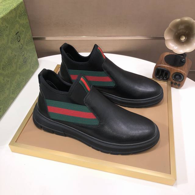 工厂价古奇.全新潮款上市,休闲时尚男鞋鞋面采用进口牛皮+舒适羊皮内里,原版耐磨橡胶大底,版型简洁大气,潮男专属 38-44