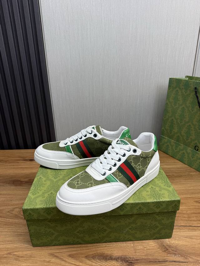 工厂p价 古奇.新品来袭时尚潮男必备,大牌风范, 材料:鞋面进口牛皮拼接面料+舒适网内里,耐磨橡胶大底,39-44