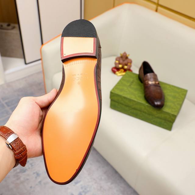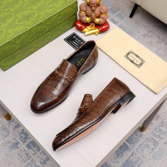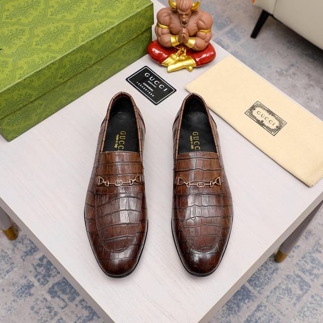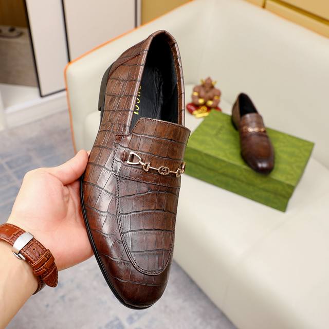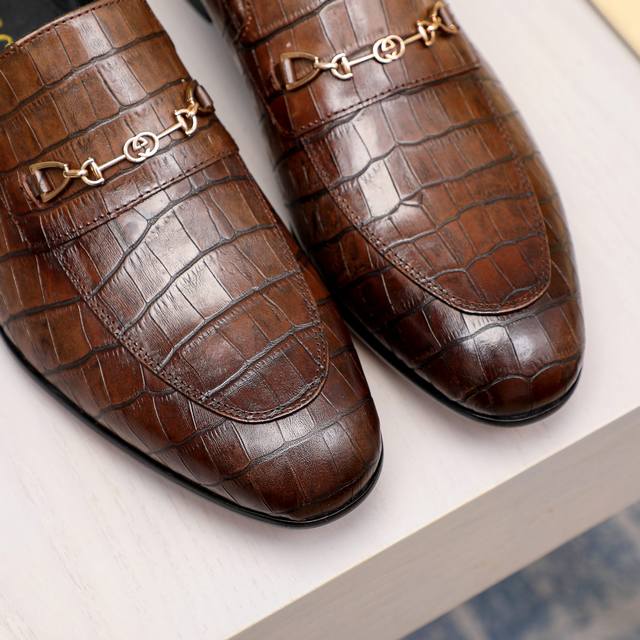 工厂P价 古驰 Gucci 官网男士商务正装皮鞋更新香港专柜同步新款完全一比一复刻出货专柜品质零差距0外均采用进口牛皮配原版五金扣皮内里制作,2色可选,配码 38-45