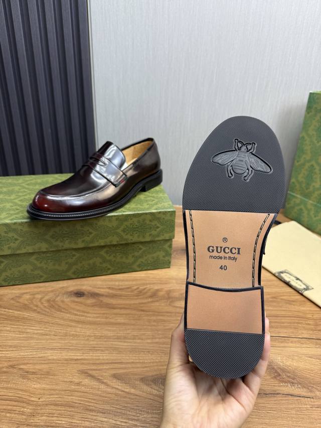 GUCCI古奇.男士商务休闲皮鞋,奢华尊贵全部采用进口原版品牌皮料,只为打造更为舒适的穿着体验,鞋面:原版牛皮进口全牛里,原版大底10-45 45不退换
