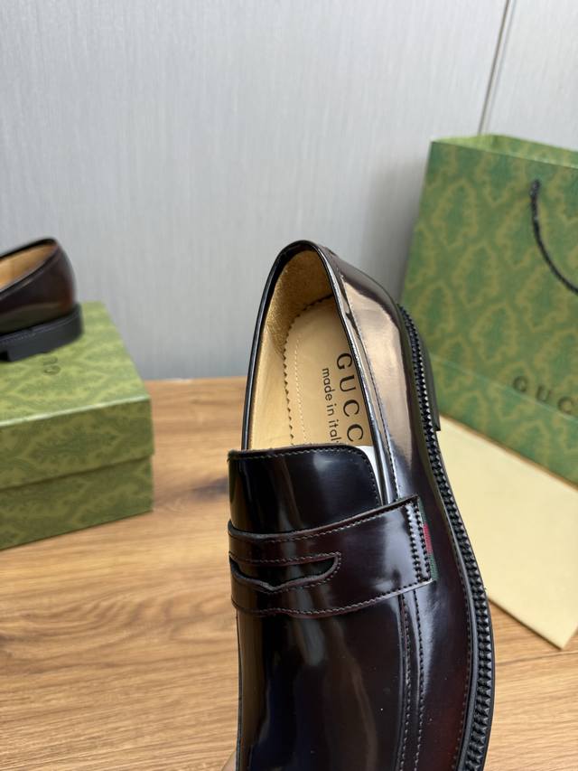工厂p价 GUCCI古奇.男士商务休闲皮鞋,奢华尊贵全部采用进口原版品牌皮料,只为打造更为舒适的穿着体验,鞋面:原版牛皮进口全牛里,原版大底10-45 45不退