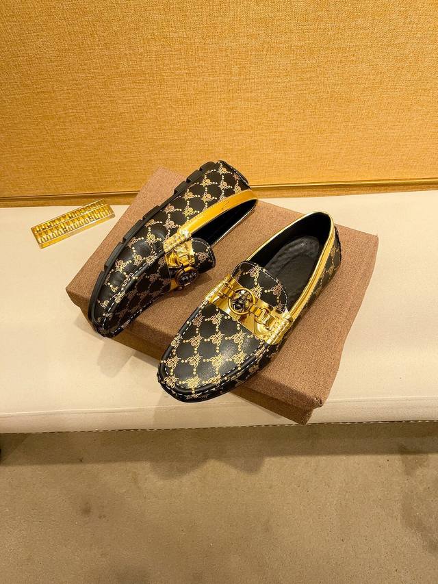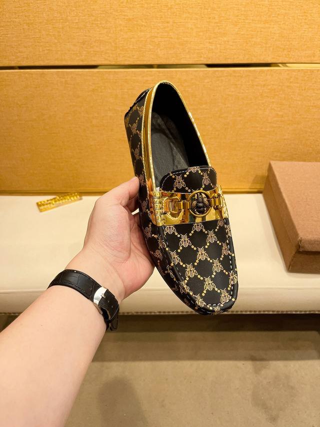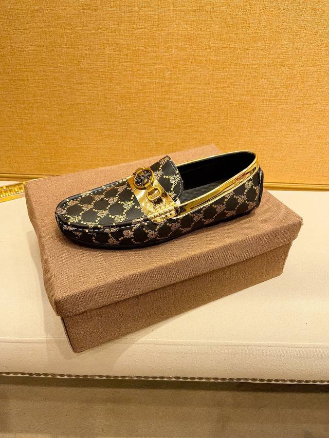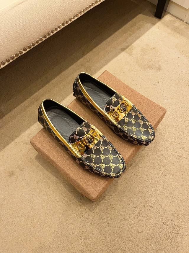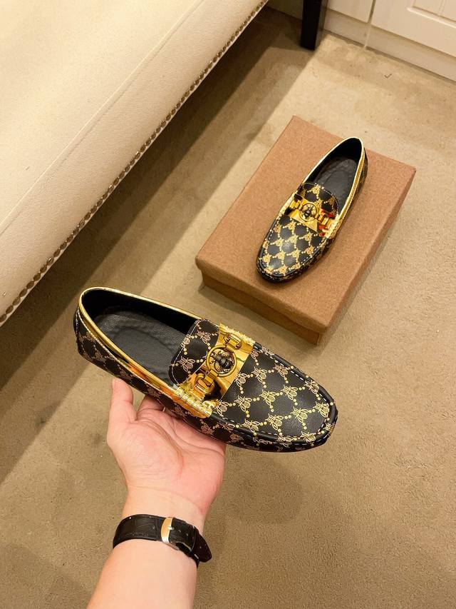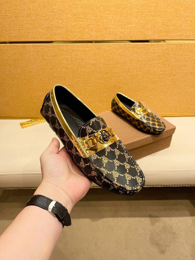 工厂p价 Gucci 古奇男士新款豆豆鞋上市 原单品质 官网1:1同步头层牛皮皮内里,完美造型顶级品质,橡胶耐磨大底,,鞋型饱满,立体感十足超级百搭 高档不失品味,时尚、新颖 。色可选!码数:38-44 45订做