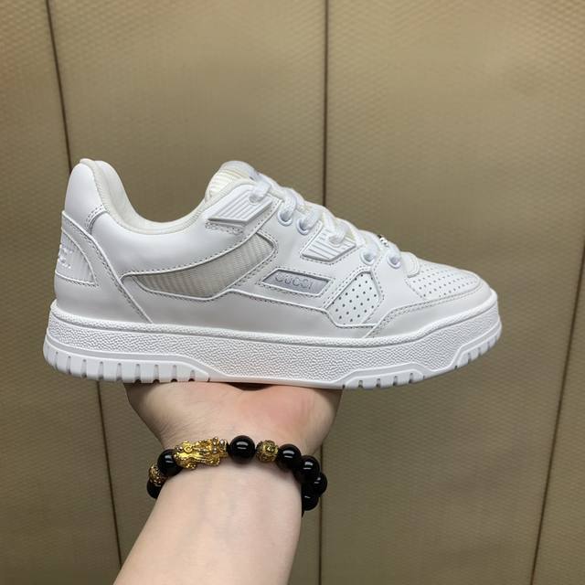 原版购入开发 做货 古驰mac80全新爆款系列 精致小巧的互扣式双g标识浪漫诠释此系列的美学理念 选用米白色皮革,复古灵感巧妙融于运动鞋设计,焕新演绎品牌标识