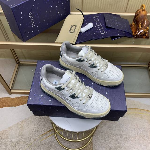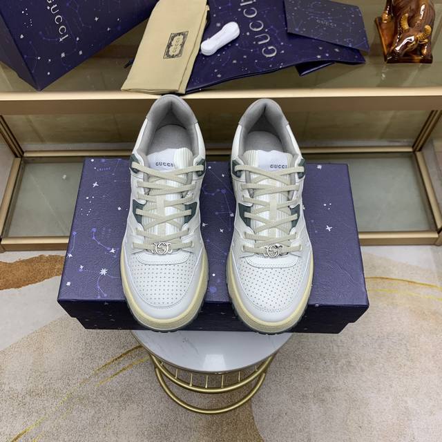 原版购入开发 做货 古驰mac80全新爆款系列 精致小巧的互扣式双g标识浪漫诠释此系列的美学理念 选用米白色皮革,复古灵感巧妙融于运动鞋设计,焕新演绎品牌标识