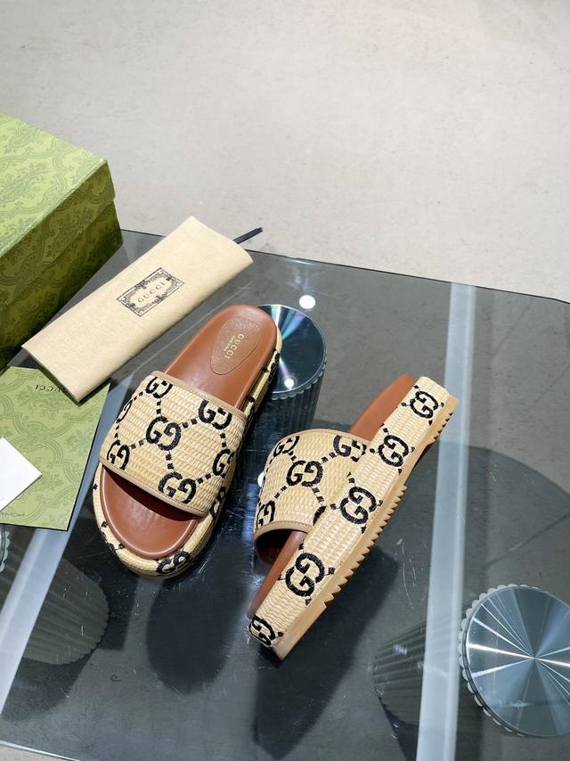 古驰Gucci最新限量厚底拖鞋 。顶级品质发售 购入正品开发 . 材质.工艺与原版一致