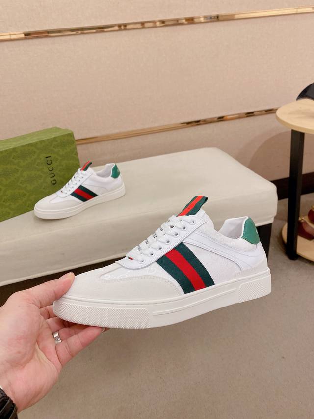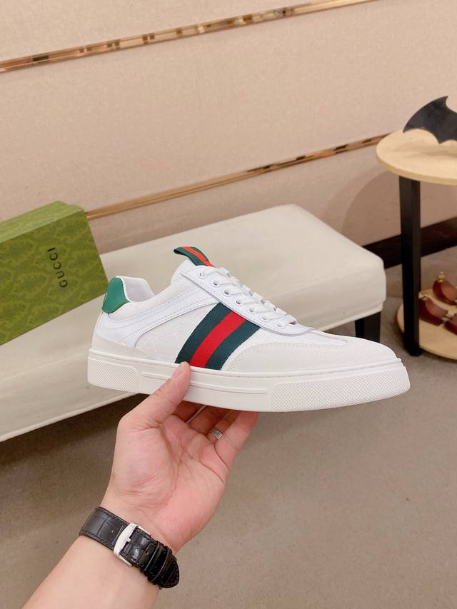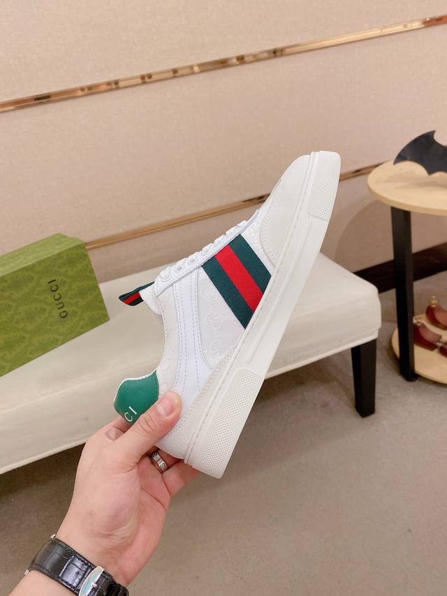 Gucc*男士休闲小白鞋运动鞋,这款的舒适度真的很绝,超级轻便舒适百搭,必备单品,这款单品充满了趣味十足的复古气息。G家...