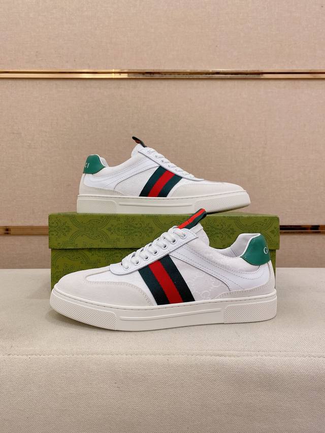 Gucci 古驰-高端品质 原单休闲运动鞋-鞋面:纳帕小牛皮、打孔小牛皮、鞋身.鞋舌;丝印品牌图腾-内里:水染牛皮-大底:超轻tpr...