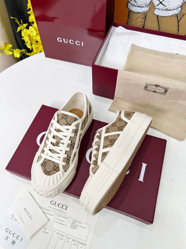 新款运动鞋以标志性Gg帆布匠心打造将典藏设计与现代美学巧妙糅于一体。大胆前卫的廓形配以“Gucci”印花压纹橡胶鞋底,缔就个性十足且穿着舒适的亮眼单品