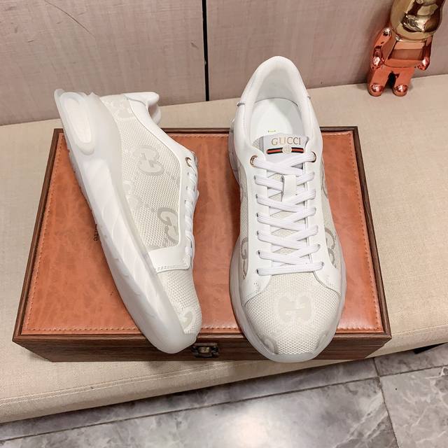 新款: 厂价: 古奇Gucci* 最新爆款休闲鞋,顶端品牌奢侈~代购,顶级~质量。鞋面選用进口透气牛皮搭配材质透气羊皮垫脚 精细做工。原版个性时尚柔软橡膠耐磨防