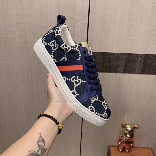 新款: 厂价: 古奇Gucci* 最新爆款休闲鞋,顶端品牌奢侈~代购,顶级~质量。鞋面選用进口透气牛皮搭配材质透气羊皮垫脚 精细做工。原版个性时尚柔软橡膠耐磨防滑大底,上脚轻巧舒适,实物拍摄實物更好看,111:码: 38-44,2色入选