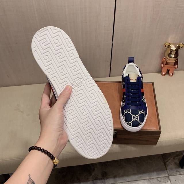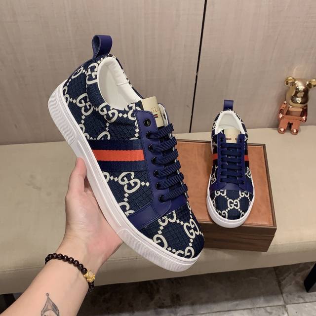 新款: 厂价: 古奇Gucci* 最新爆款休闲鞋,顶端品牌奢侈~代购,顶级~质量。鞋面選用进口透气牛皮搭配材质透气羊皮垫脚 精细做工。原版个性时尚柔软橡膠耐磨防