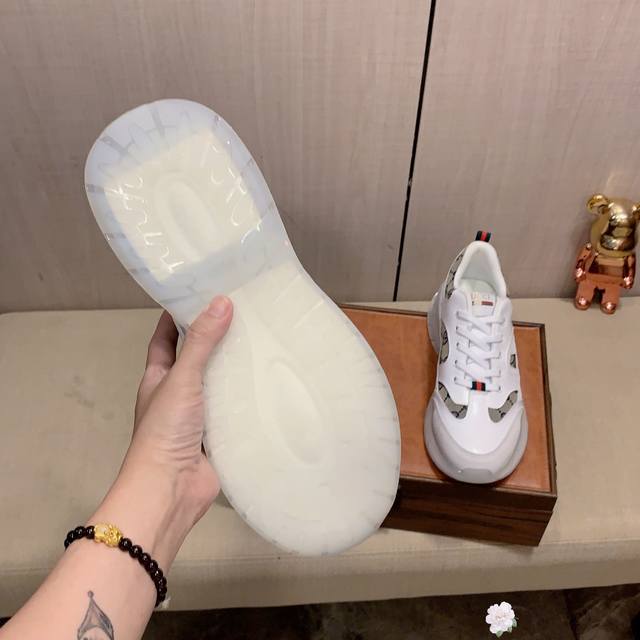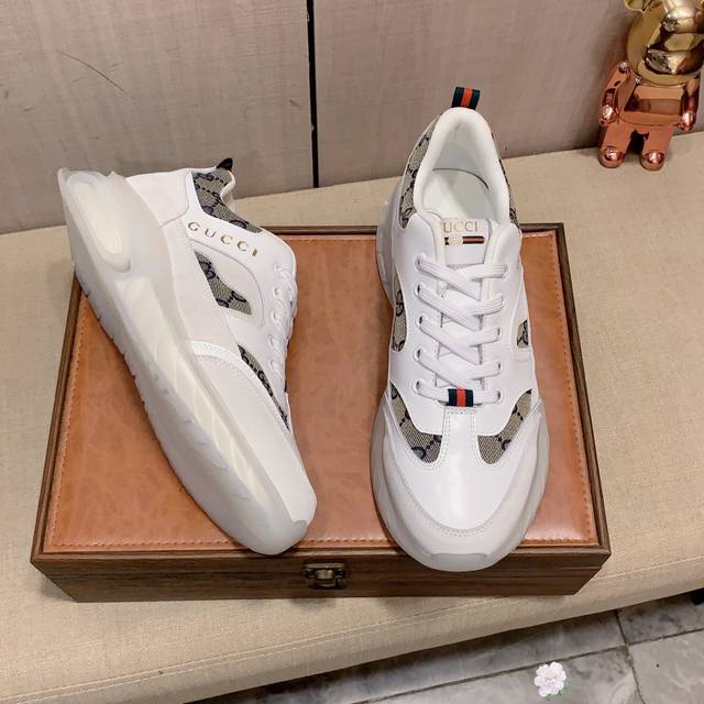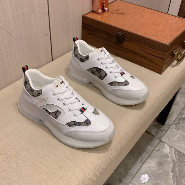 新款: 厂价: 古奇Gucci* 最新爆款休闲鞋,顶端品牌奢侈~代购,顶级~质量。鞋面選用进口透气牛皮搭配材质透气羊皮垫脚...